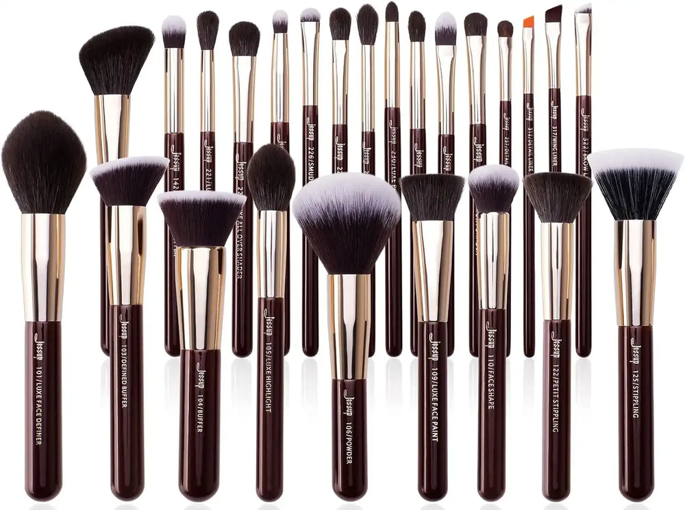 ✔️ متكامل: يشمل جميع أنواع فرش المكياج الأساسية لتطبيق الفاونديشين، البودرة، الكونتور، البلاشر، الإيشادو، والهايلايتر.