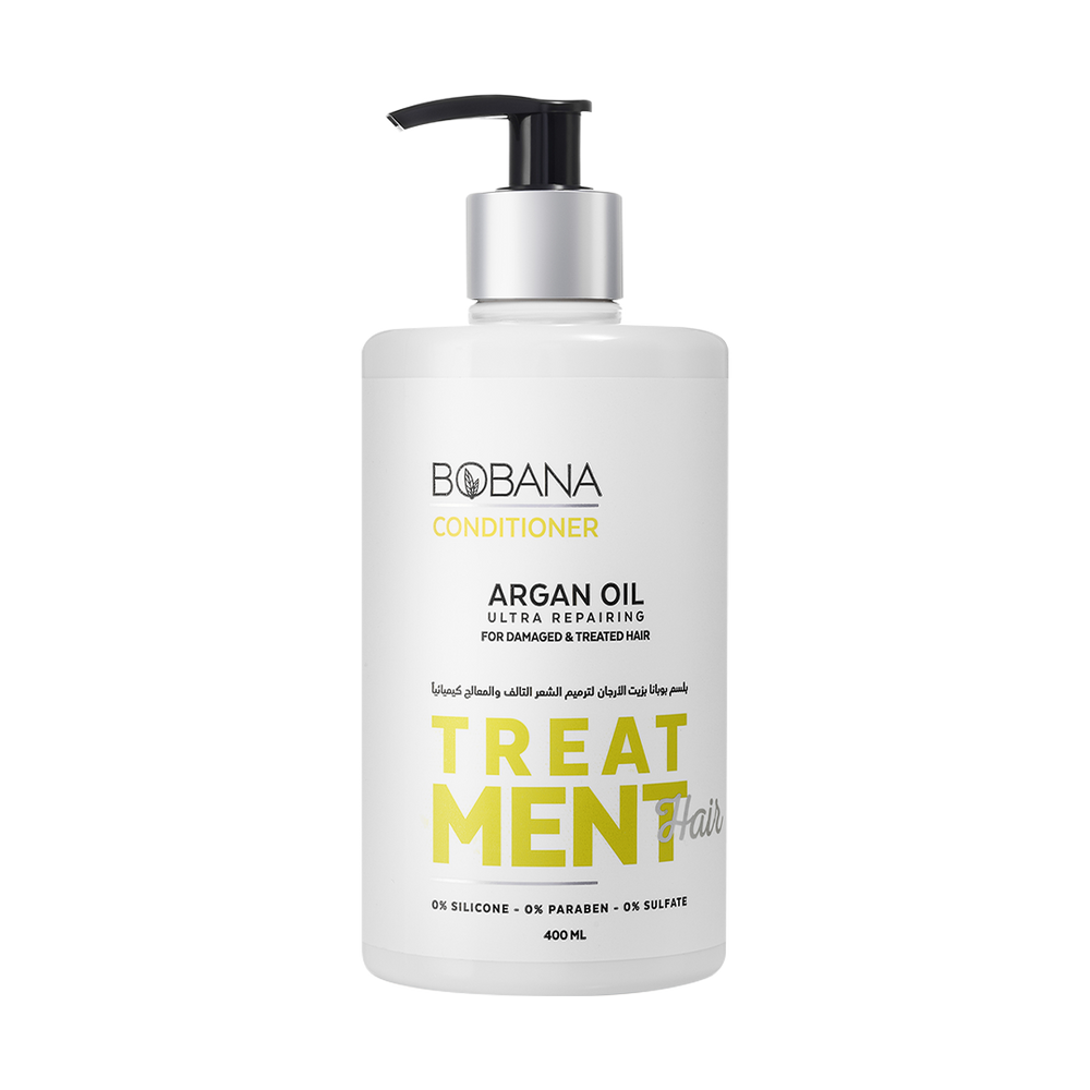 A unique creamy conditioner formula by Bobana enriched with Argan Oil that rebuilds damaged hair strands caused by heat exposure, dying and chemical treatments. Bobana's Argan Oil Conditioner with its effective formula repairs damaged and treated hair by gently moisturizing and rebuilding it. This powerful formula leaves your hair healthy and smooth.