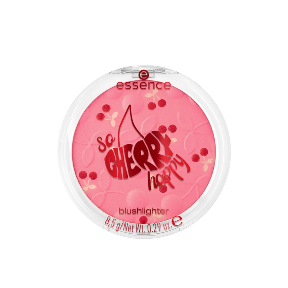 Cheeks that glow with essence So Cherry Happy Blushlighter. This radiant powder combines the color of a blush with the luminosity of a highlighter, giving you a customizable rose-gold sheen that suits any occasion.