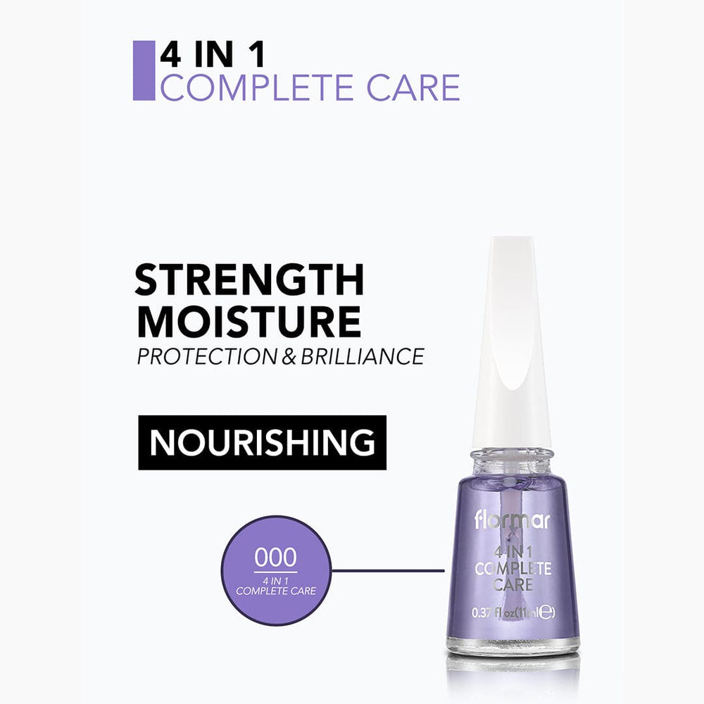Flormar 4 in 1 Complete Set is a nail primer that can be used as both primer coat and top coat with 4 different effects on the nail. These 4 effects are strengthening,moisturizing,healthy growth and polishing the nail surface. Gloss and colorless,this nail polish can be applied under nail polish alone,or over the nail polish as top coat.