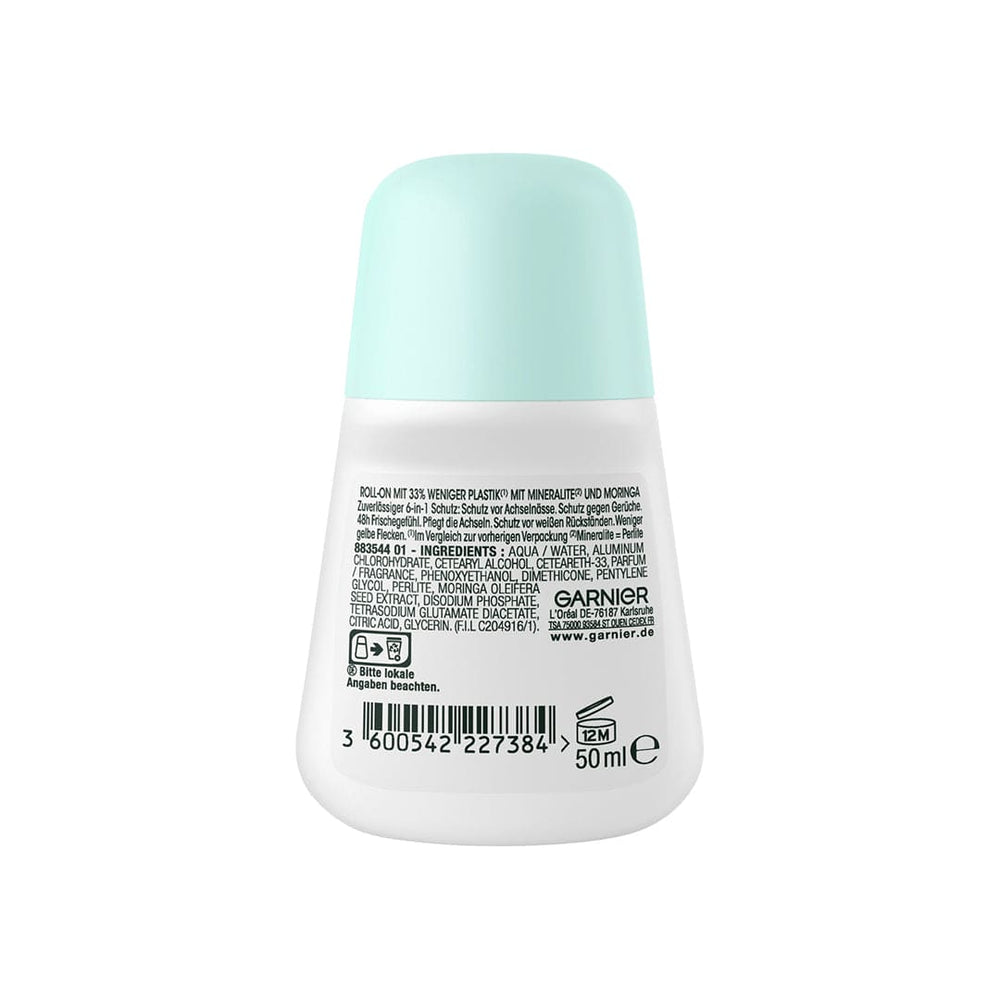 The Garnier Deo Roll On Antiperspirant Mineral Protection 5 has a five-fold effect by providing 48-hour protection, protecting against white residue and yellow stains, preventing underarm wetness and additionally caring for the underarms.Anti-perspirant with 5-fold effect