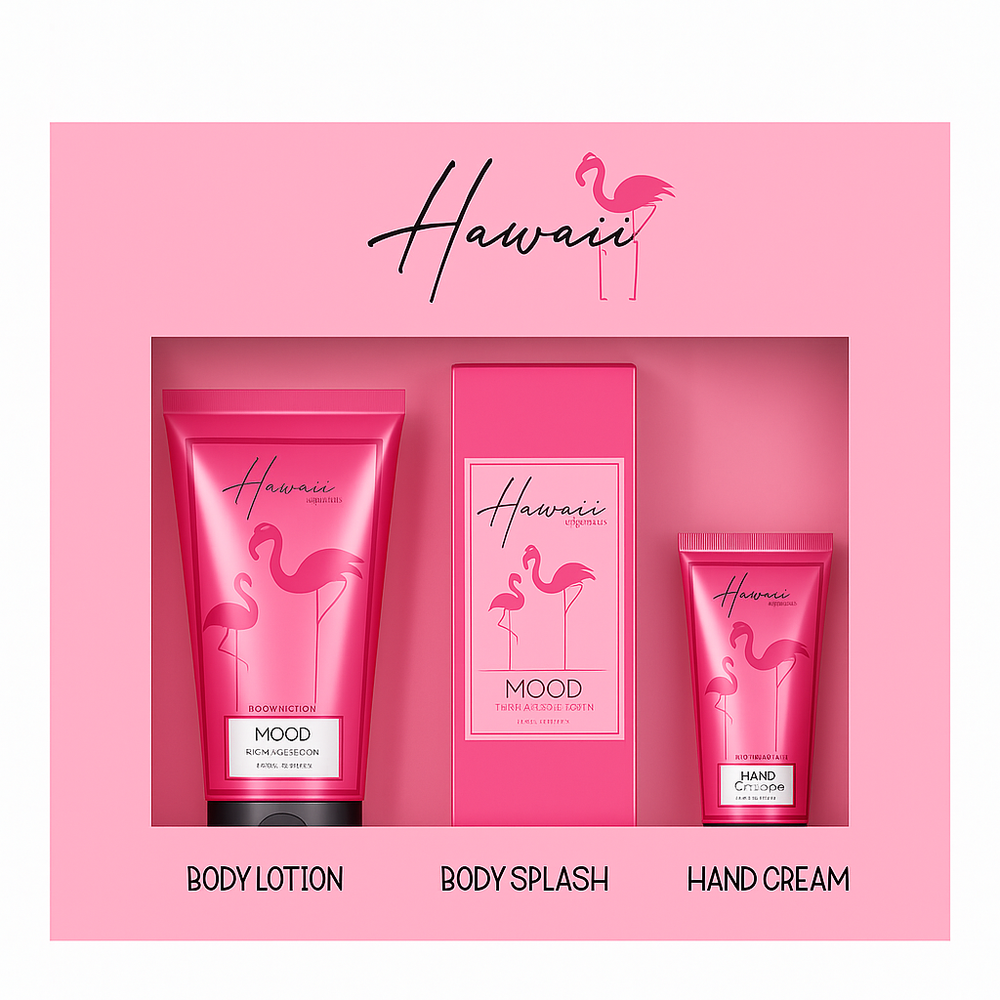 اكتشفي إحساس الانتعاش والأنوثة مع مجموعة Hawaii Mood المميزة، اللي بتجمع بين العناية والرائحة الجميلة في باقة أنيقة برسومات الفلامنغو الجذابة. مثالية كهدية أو لتدليل نفسك كل يوم!