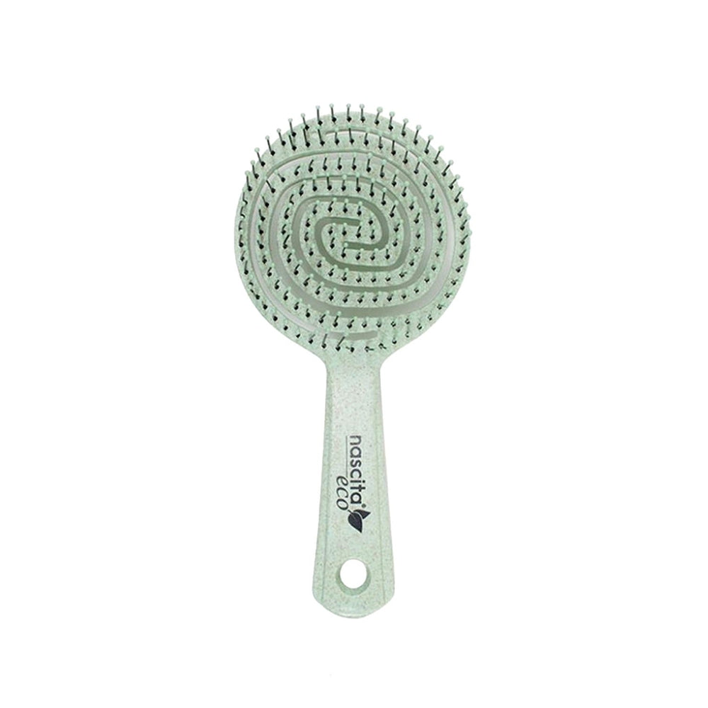 Nascita Recyclable Hair Brush - 26 NASCITA recyclable hair brushes are made of wheat straw obtained from renewable biomass through biological conversion. Nascita Environmentally friendly brushes do not emit carbon emissions while being made, therefore less energy is used and there is no air pollution. Nascita ECO brushes are both recyclable and environmentally friendly. It is a hair brush that you can enjoy using for many years thanks to its brand new, high quality and ergonomic design. It is specially formulated to control electrification in hair care. Its special teeth allow your hair to be easily combed and you to feel a soft comb passage especially in curly hair. It helps your hair to dry in a short time by taking in extra air. You can easily shape your hair thanks to the air flow it creates.