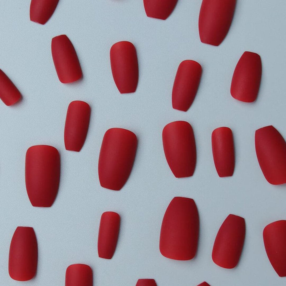24pcs Short Coffin Red Matte Solid Fake Nail