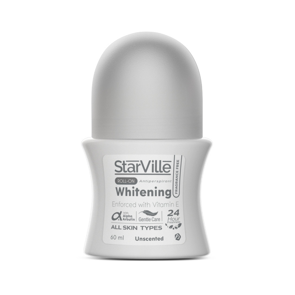Enriched with Alpha Arbutin, Vitamin C, and Licorice Extract, Starville Whitening Roll On effectively brightens underarms and promotes a radiant, evenly toned complexion.